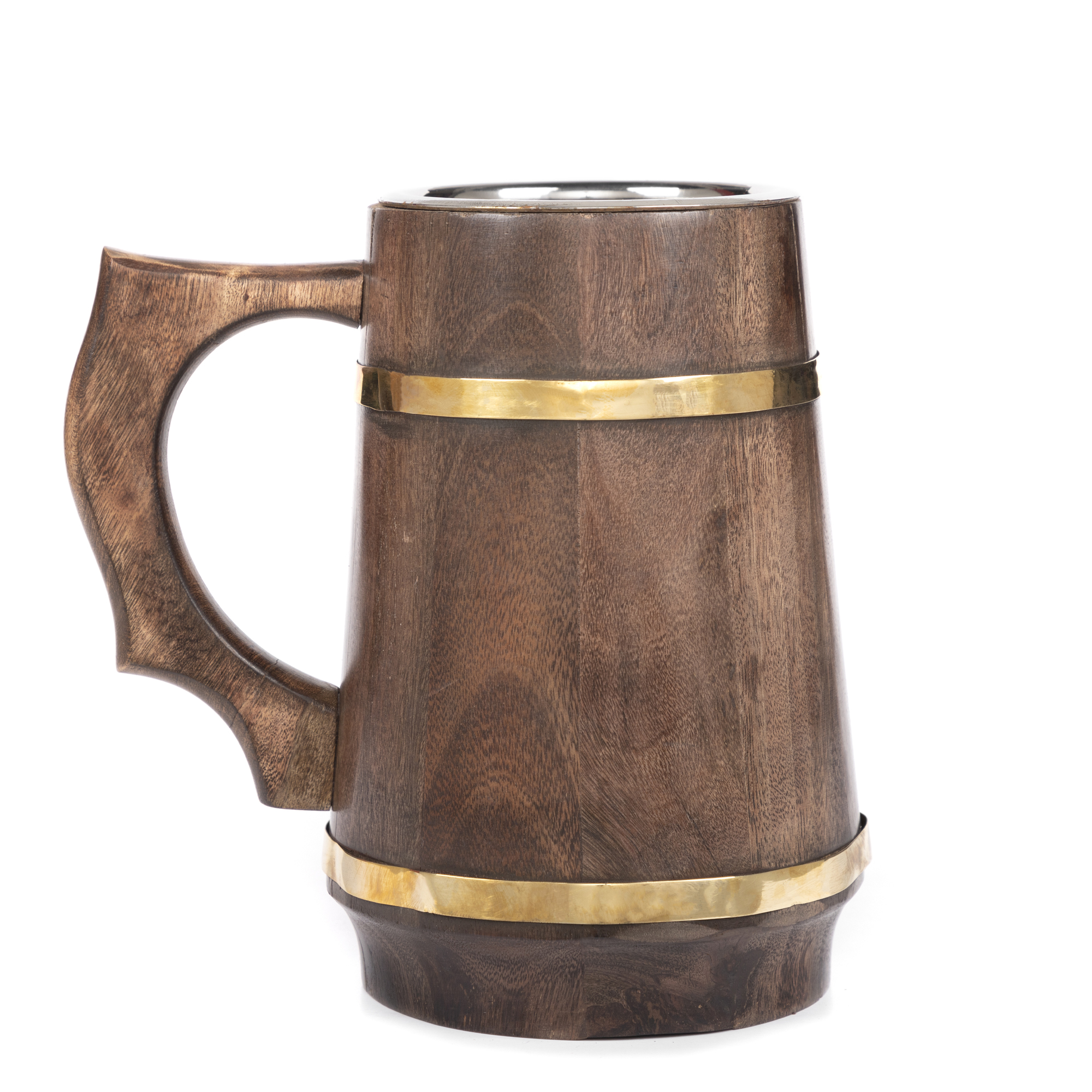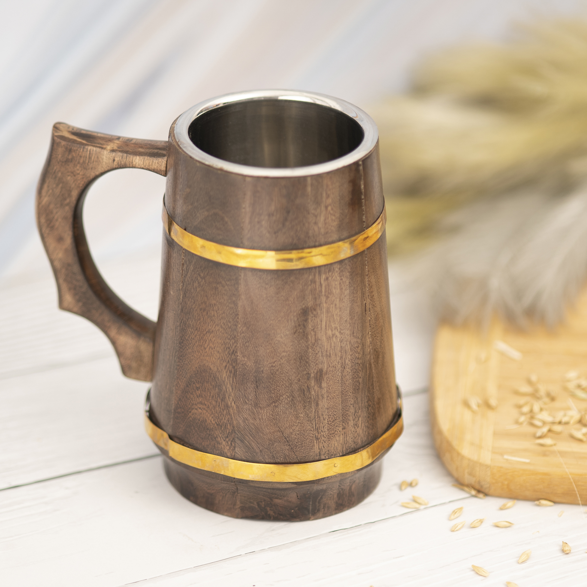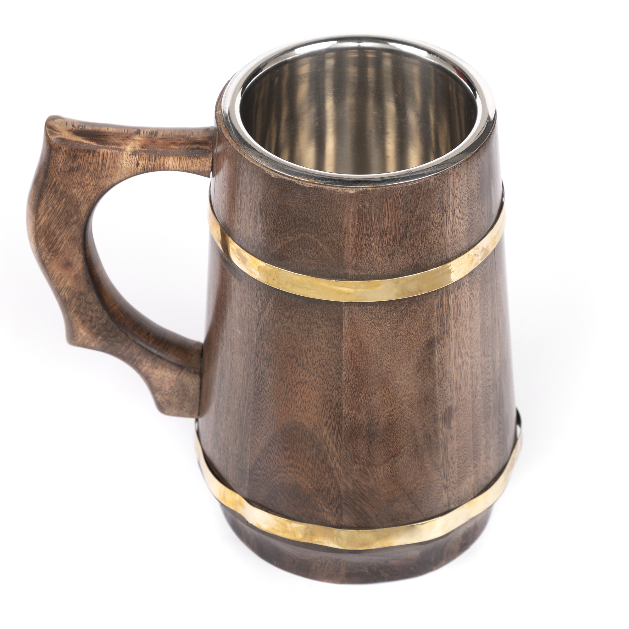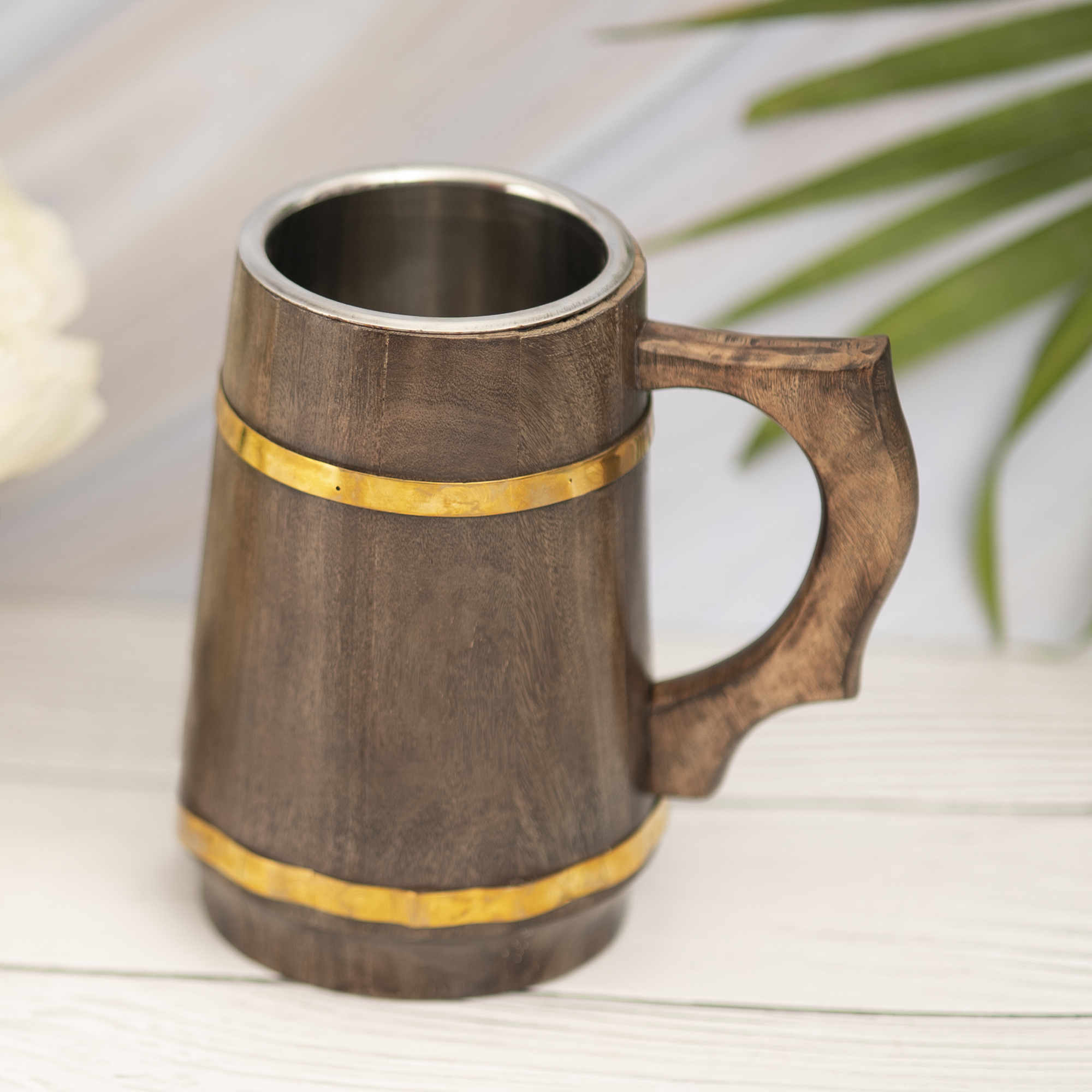 Custom Handmade Dark Brown Drinkware European Styled Vintage Wooden Beer Mug one of the Lastest Design to relive Medieval Era.
